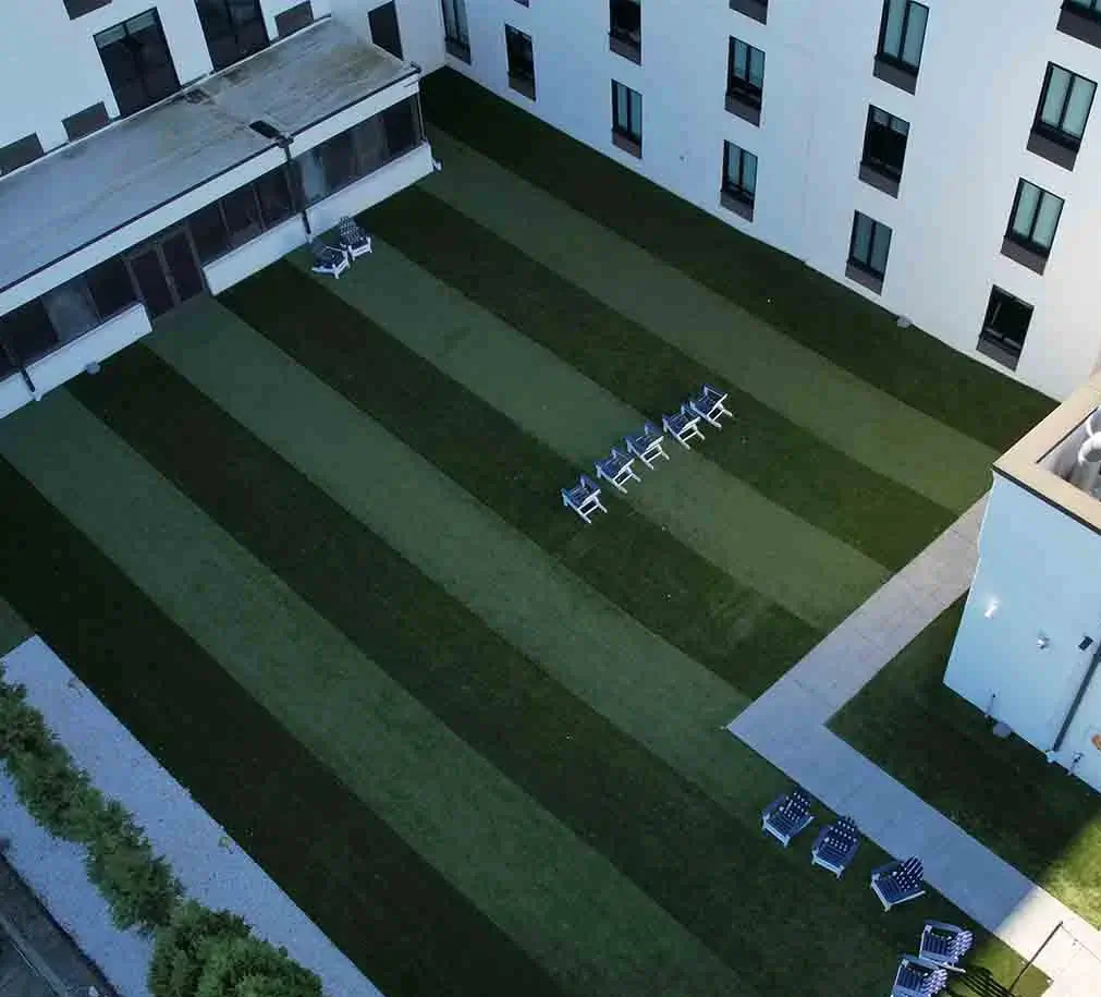 - Poolside turf and low-mess lounge zones
